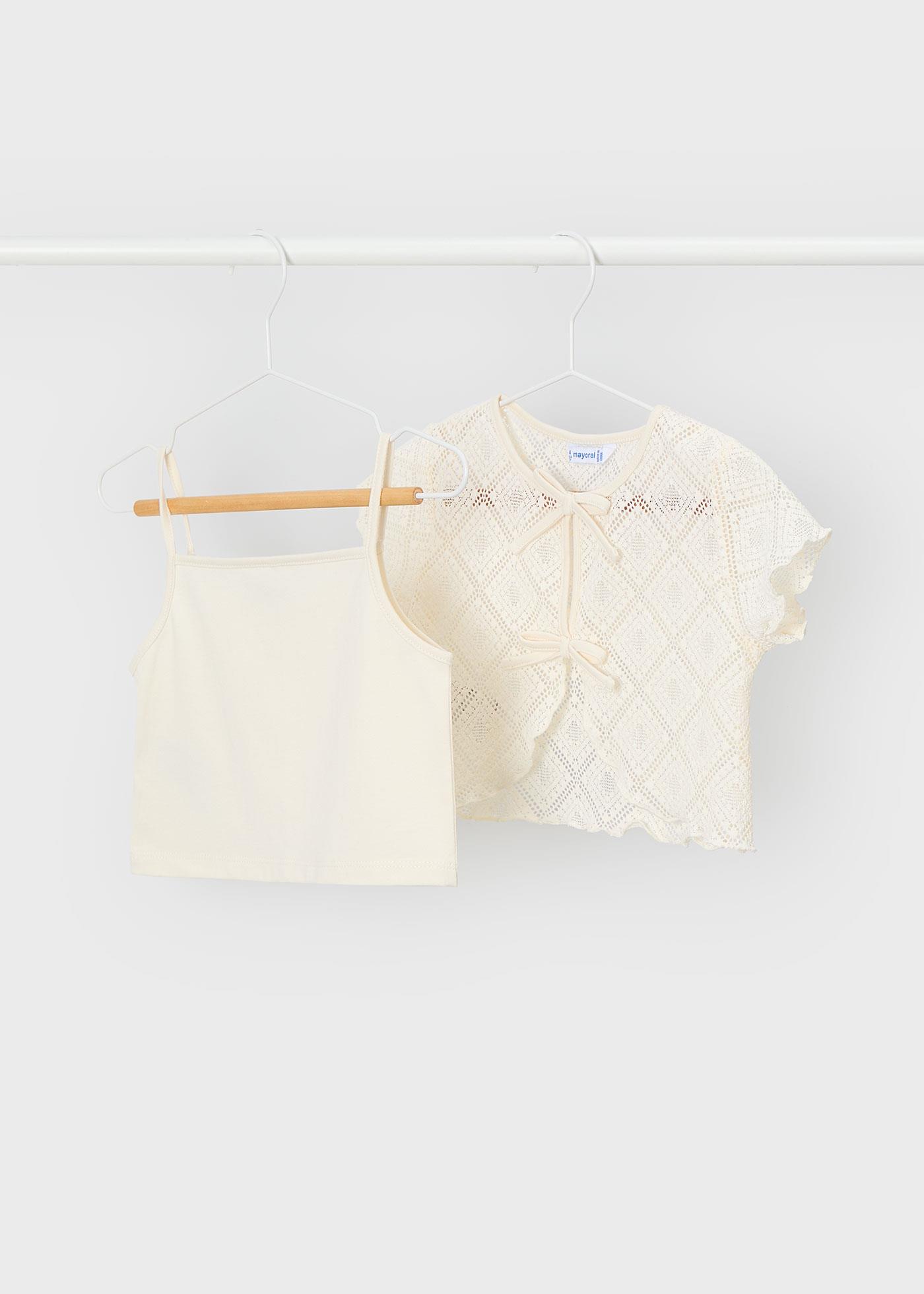 A modern and elegant touch to girls' everyday style: Mayoral Girls' T-shirt Set. Combining the tranquility of beige with technical fabric quality, this set promises both a stylish look and superior freedom of movement.