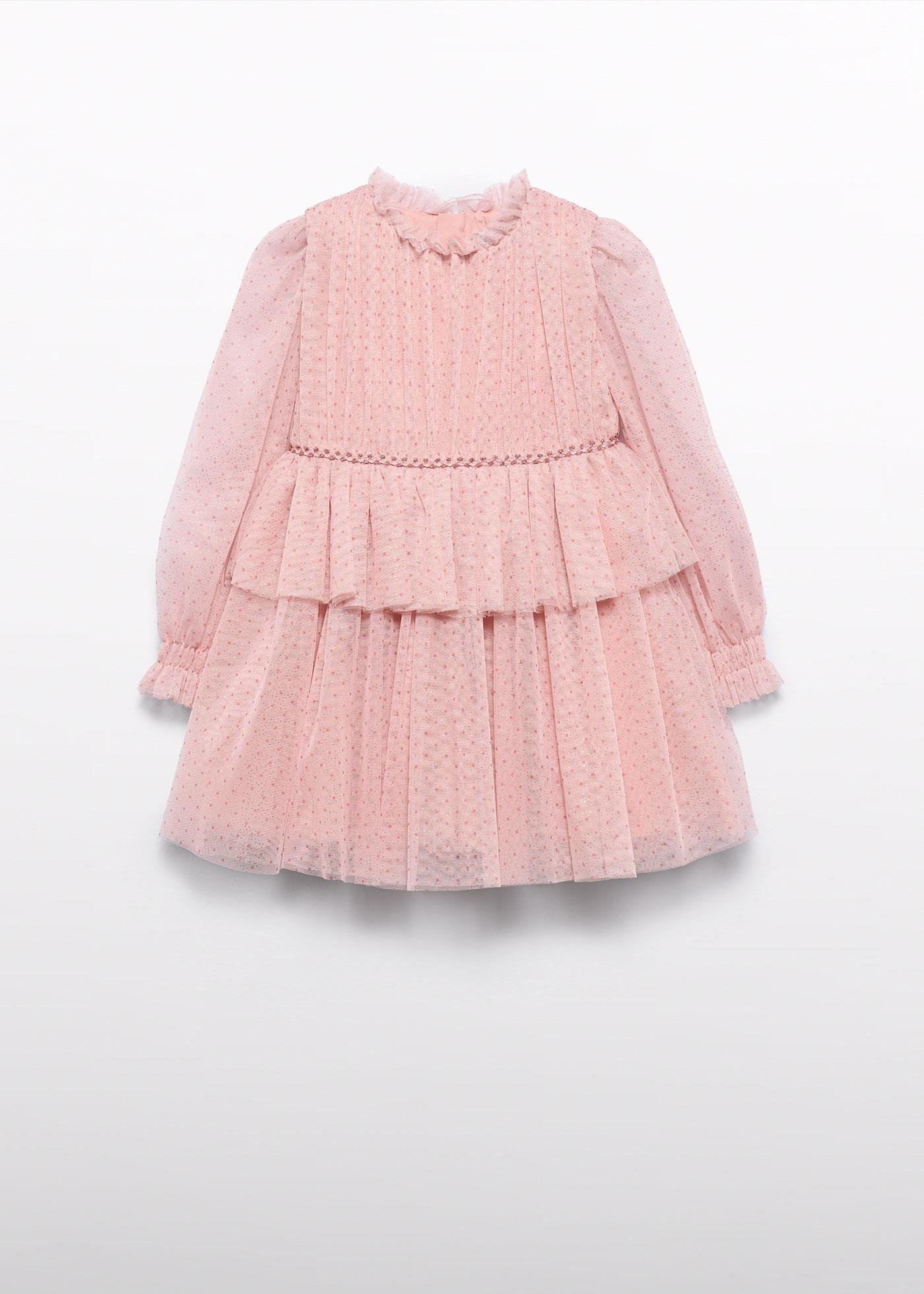 Mayoral Abel&Lula Kız Çocuk Uzun Kol Tüllü Elbise (M252N-5532-PEMBE)